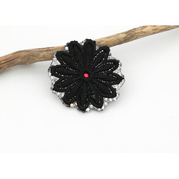Black Color Small Flower Embroidery Patches , Embroidery Applique Patches